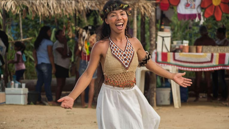 Artista indígena em grafismos em tecido, estudante e membra do grupo Ruaringo, de cantos ancestrais witoto